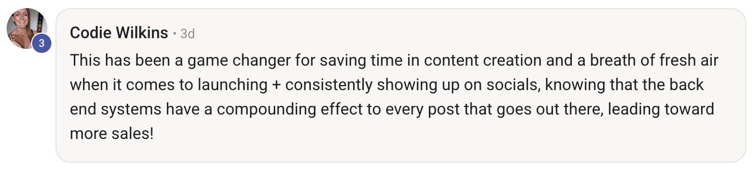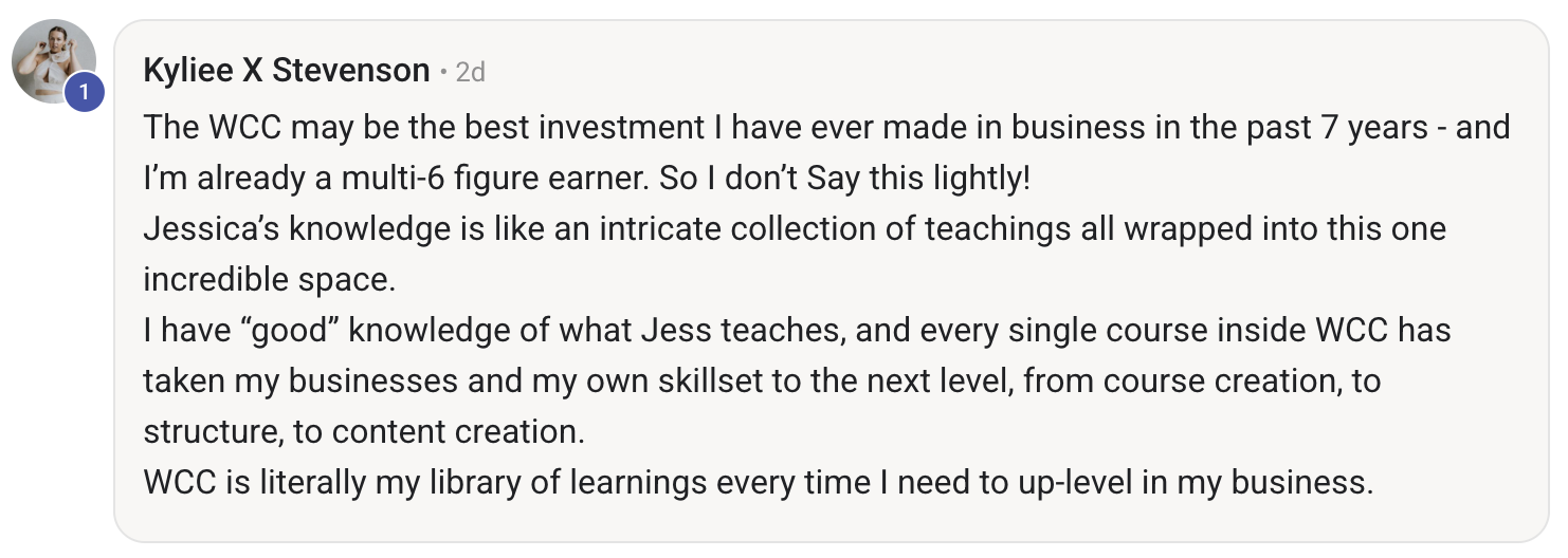 You not only gain access to our entire 7-Figure Business Bundle but also the community support and pop-up live teachings we hold so that you always feel supported!