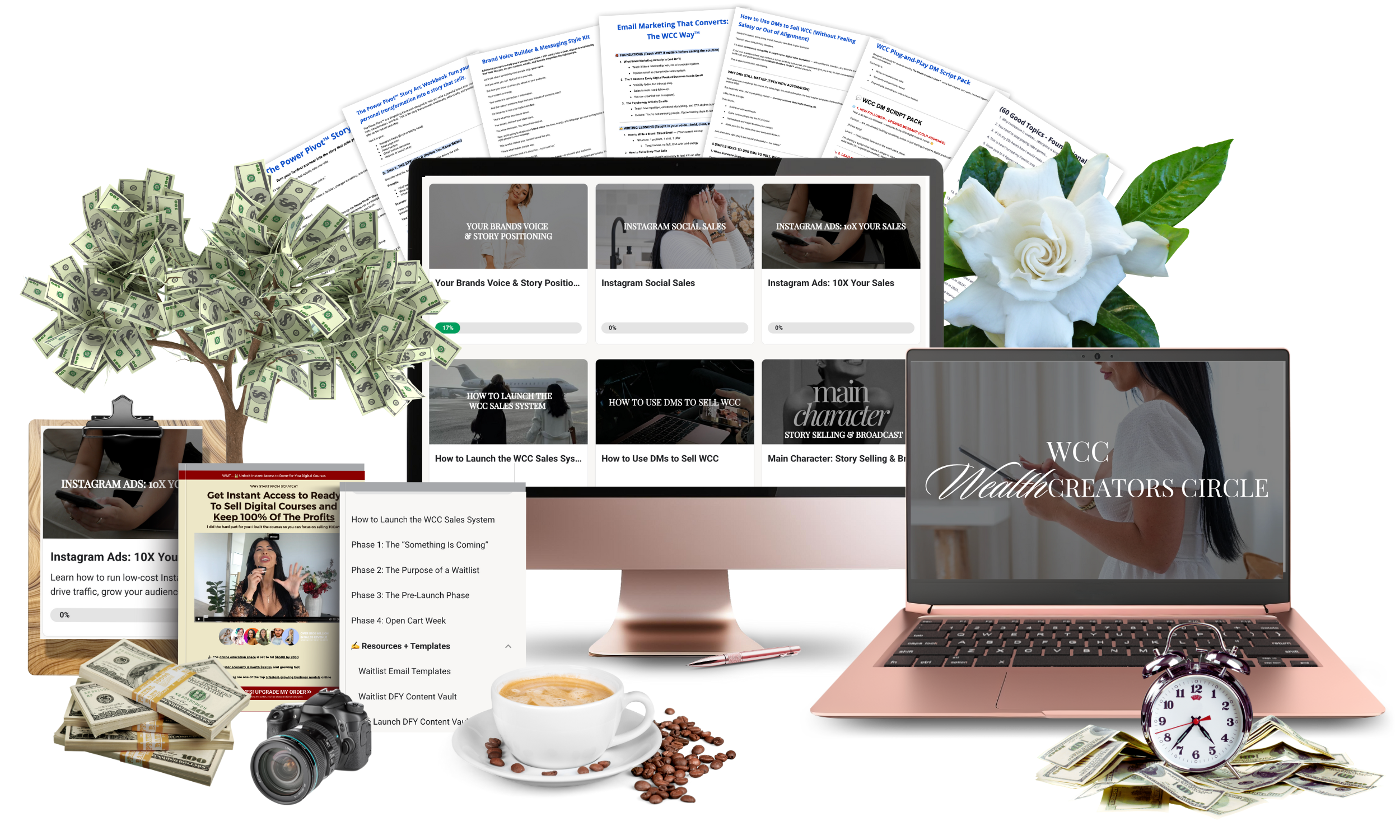 You can resell the Wealth Creators Circle (WCC) as your own and keep 100% of the profit — or just use it as a template to launch your own empire.