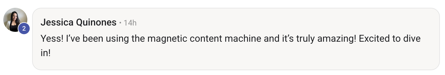 Magnetic Content Engine™: Your AI-powered content system that writes high-converting content in your voice that sounds like you in under 30 minutes a day— and sells while you rest